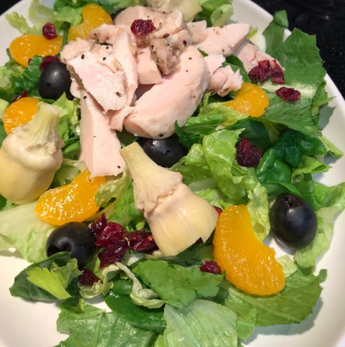 A new salad ingredient for me, front and center: artichoke hearts