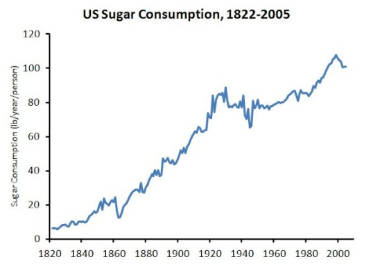 The more important question, and a very different one, is whether our sugar consumption has uniquely deleterious effects on our health. To refute the claim that consuming sugar might cause heart disease, Dr. Guyenet points out that heart disease mortality has dropped precipitously over the years of the obesity and diabetes epidemics and during a period when sugar consumption clearly increased (technically “caloric sweeteners” since the increase was due primarily to high-fructose corn syrup). Professor Kealey makes a similar point but with a far more nuanced perspective about how mortality rates are confounded by what are, after all, a half-century’s worth of very concerted efforts by medical researchers, the pharmaceutical and medical industry, and public health authorities to reduce mortality. That these efforts succeeded in reducing mortality is indeed commendable, but it makes it far more difficult than Dr. Guyenet suggests to derive meaning from the mortality data. If it’s evidence against the sugar hypothesis, it’s very weak evidence.”