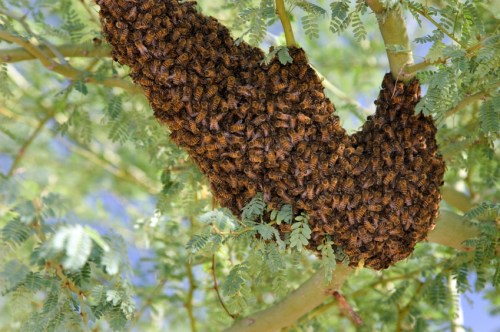We had one of these swarms in our front yard a few years ago for several weeks. Yes, that’s hundreds of bees. And most in Arizona are Africanized.
