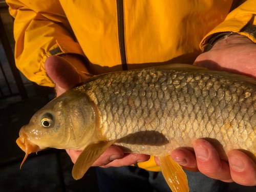 My son and I had a great time catching this carp, cooking it, and eating it. Thanks, Paul!